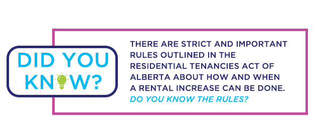 Even if there is no cap to the amount a landlord can raise the rent, landlords are encouraged to be reasonable when doing so. There are strict and important rules outlined in the Residential Tenancies Act of Alberta about how and when a rental increase can be done. Do you know the rules?